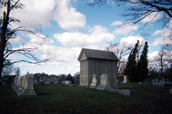 Perhaps the most unusual monument in the cemetery is this 9 x 7 1/2 x 4 granite miniature mill which serves as a lasting memorial to mill owner F.H. Stafford The windows are reproduced in faithful detail as well as the doors on each storey which were needed for loading. The doors even boast minutely executed keyholes!